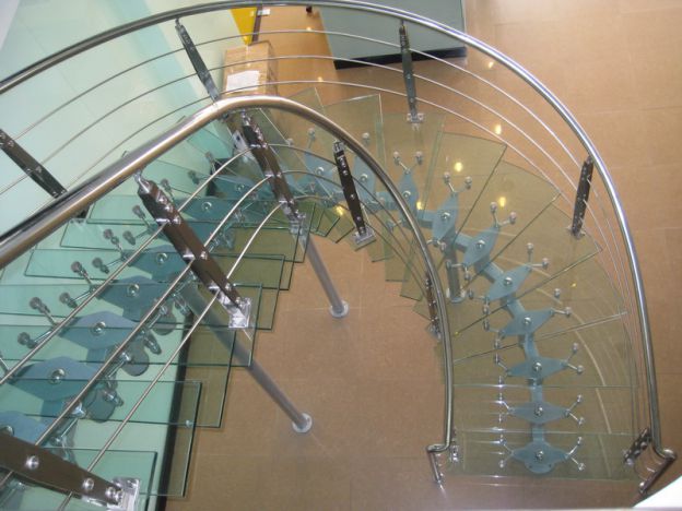 Cầu thang kính loại cong